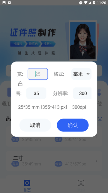 根据个人需求自行选择不同的证件照尺寸,以此来快速制作个人证件照