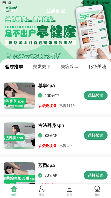 除了按摩推拿以外还可以预定采耳等服务,满足更多用户的需求。