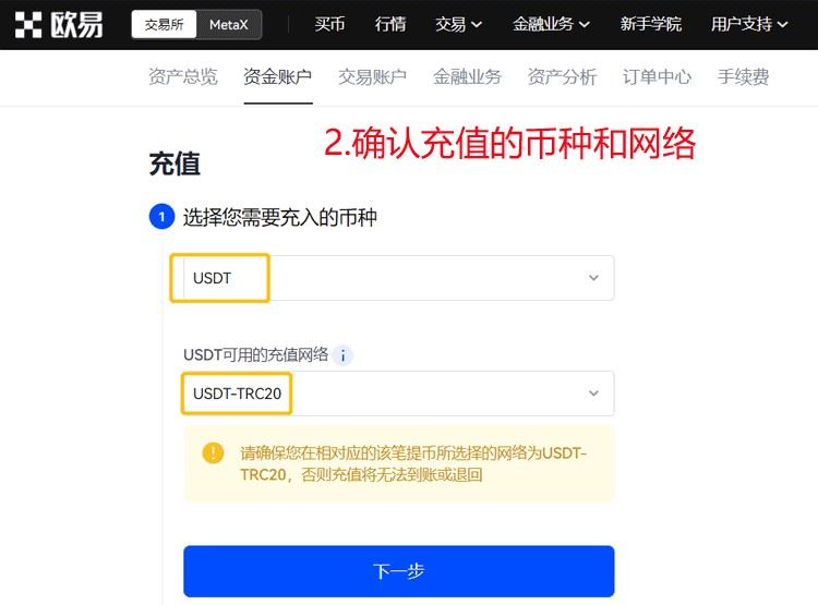 注意事项:要确保充币和提币交易所选择的网络一致,否则币会丢失或者无法到账!