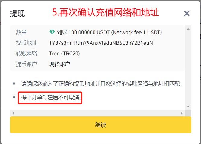 最后一次确认提币的网络和地址,申请之后将无法取消!
