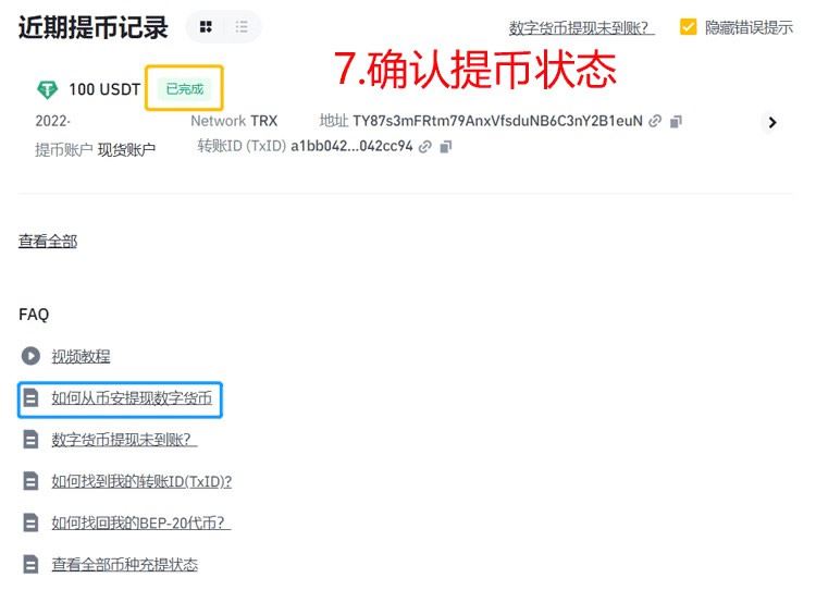 一般除了BTC之外,提领USDT等币种,5分钟就可以确认到账。提币状态显示「完成」,表示提币已经完成。可以在充值钱包内确认!
