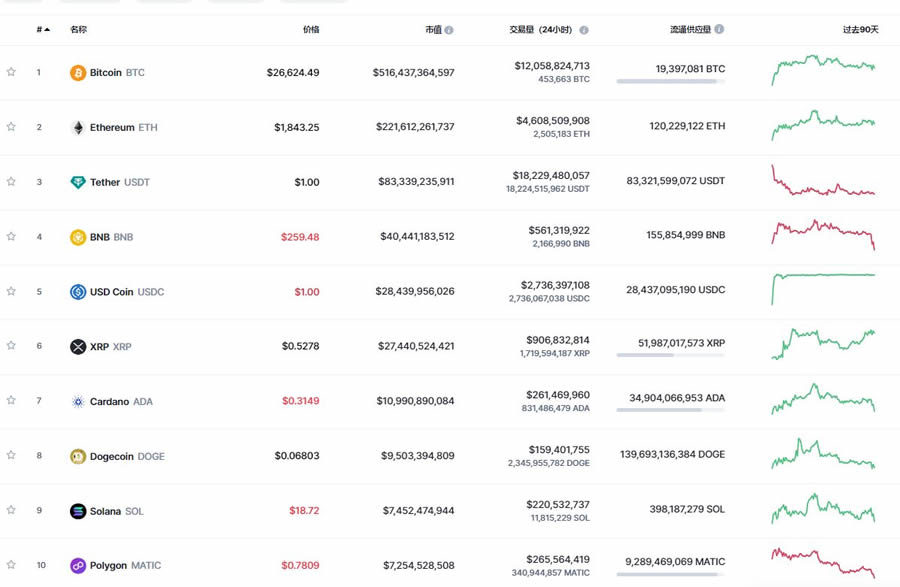 【市值排名前10的加密货币;团源:CoinMarketCap】