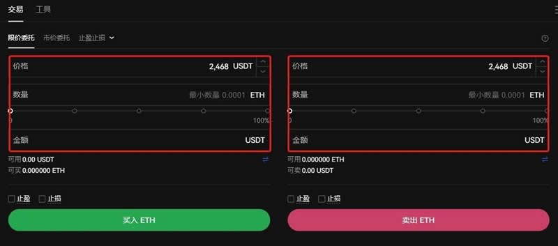 8、在搜索框输入ETH,选择ETH/USDT交易对,可以看到ETH实时行情