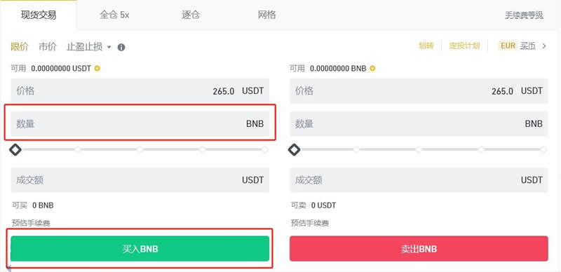 9、填写买入数量,点击【买入BNB】即可完成BNB币交易